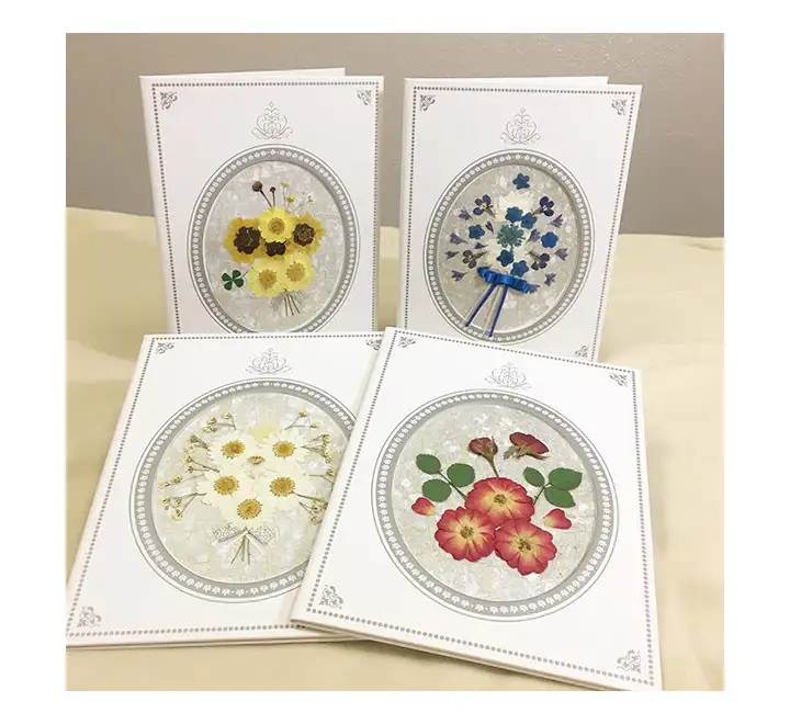 清楚な白のお花を集めてエレガントな花束を作りました!白く清らかな「ノースボール」の花言葉は「誠実・清潔」ロマンティックで気品のあるハイグレード押し花祝電です。 結婚式はもちろん、出産祝い、お誕生日、母の日や父の日、ご入卒、開店祝いなど大切な方の特別な記念日に贈る方のセンスが光る贅沢なオリジナル祝電台紙です。